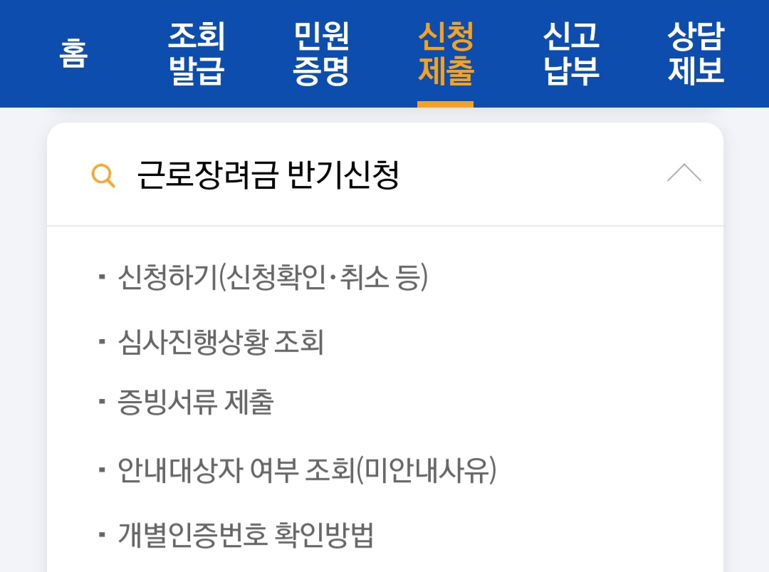 (2) 국세청 홈택스에서 "근로장려금 반기신청 및 조회"를 선택합니다. 그리고 "안내대상자여부 조회"를 선택합니다.