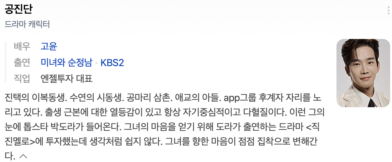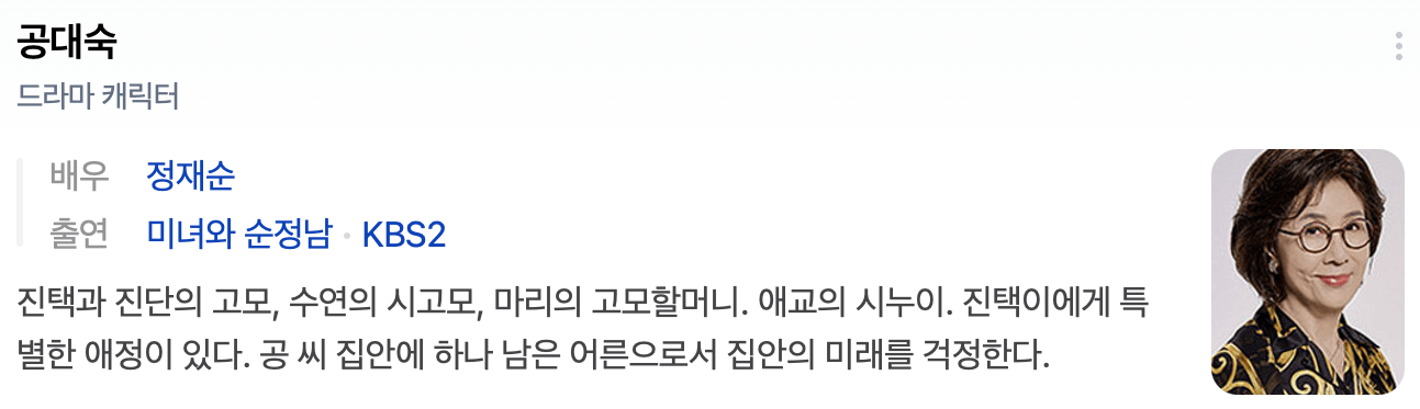 미녀와 순정남 등장인물로는 박도라(임수향), 고필승(지현우), 백미자(차화연), 공진택(박상원), 장수연(이일화), 공대숙(정재순), 소금자(임예진), 고현철(이두일), 김선영(윤유선) 홍애교(김혜선), 공진단(고윤), 고명동(이영은), 박도식(양대혁), 박도준(이상준), 공마리(한수아), 김꽃분(허진), 홍진구(이승형), 차봉수(강성민), 비비(원유진), 이재동(남중규) 등입니다.