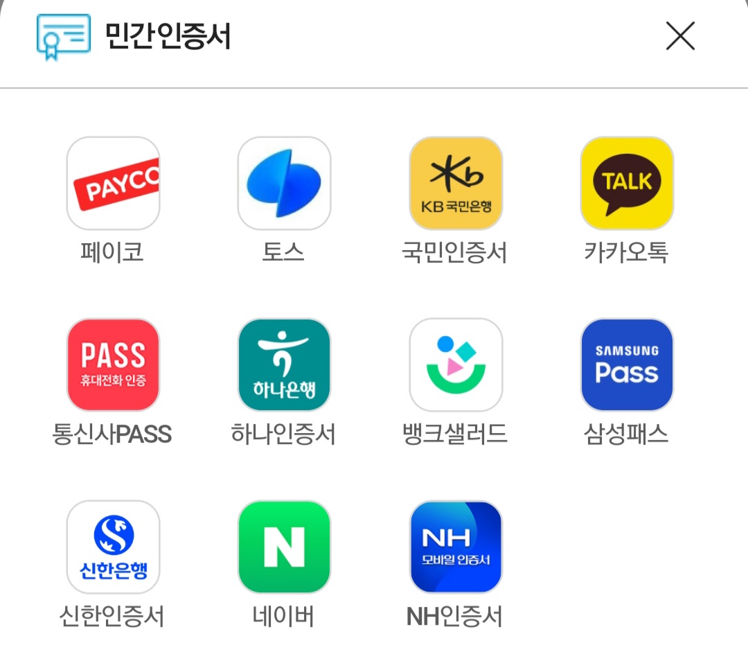 (4) 핸드폰 번호가 있다면, 간편 인증(민간인증서)을 선택해서 로그인을 합니다.